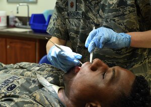 Feb. 8, 2018 Dentist approved for readiness requirement Airman Briana Wilson, newest member of the 932nd Airlift Wing dental team, takes bitewing X-rays of Master Sgt. Chris Wagoner, aircraft hydraulic shop, 932nd Maintenance Squadron, Jan. 6, 2018, Scott Air Force Base, Illinois. This was Wilson's first Reserve weekend and she kept busy with taking