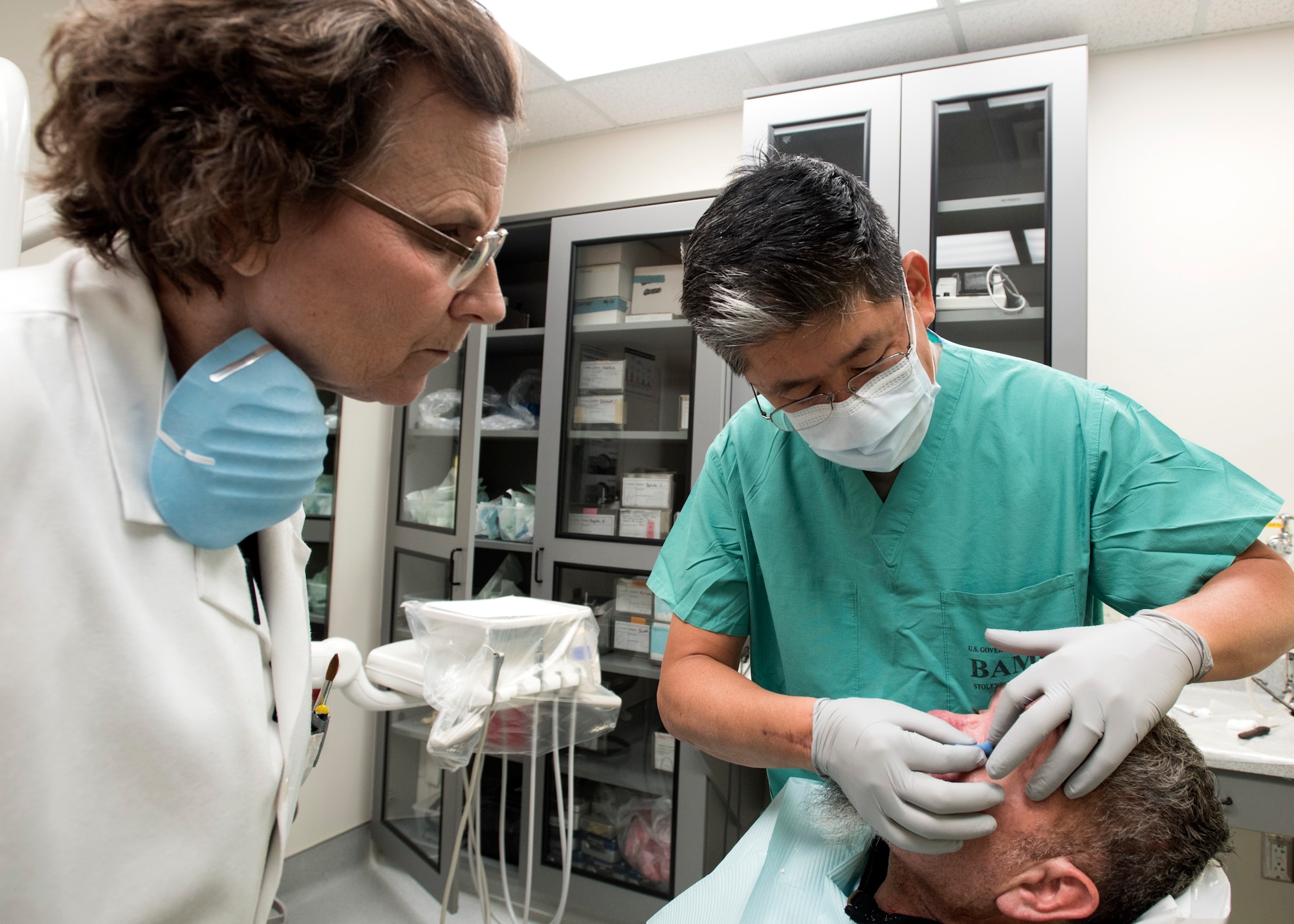Patients inspire prosthodontist Published Dec. 17, 2018 By Staff Sgt. Kevin Iinuma 59th Medical Wing Public Affairs JOINT BASE SAN ANTONIO-LACKLAND, Texas -- In the Dental Surgery Clinic at San Antonio Military Medical Center, maxillofacial prosthodontists and technicians serve many patients per month and perform procedures each work day. Maxillofacial prosthetic is a subspecialty of prosthodontics and is the only subspecialty recognized by the American Dental Association. There are currently 14 maxillofacial prosthetic fellowship programs in the world, and seven are within the United States; two are federal programs USAF and USN. “I’ve found a home,” said Lt. Col. Young J. Honnlee, a 59th Medical Wing provider. “The specialty improves quality of life by restoring or replacing oral and associated maxillofacial structures with artificial substitutes such as silicone prostheses, acrylic prostheses, metal frameworks, and a combination of all the materials.” For the first 20 of Honnlee’s nearly 30 years of service, he worked as a general dentist, but fell in love with prosthodontics as soon as he discovered the specialty and has remained so to this day. One patient he remembered had cancer in her tongue during his residency, Honnlee and his team conducted a palatal augmentation procedure, for a patient who had cancer in her tongue, enabling her tongue to reach the roof of her mouth. The patient wept for joy when she heard herself speak for the first time in years. “We have great patients to work with because they are really appreciative, and they truly appreciate the service we provide,” Honnlee said. “I wouldn’t trade anything for these patients.” Honnlee has seen more than 275 patients, performed nearly 600 procedures and many lab procedures in his time as a maxillofacial prosthodontist. “I’m here seeing the providers because of a tragic event in my life,” said Luis Corral, a retired Air Force Staff Sgt., who is also a patient. “They really are working to help make my life better.” Due to a life changing event, Corral received severe injuries to the lower half of his face and left eye. With several surgeries, therapy, and the help from maxillofacial, he is now able to move his jaw and speak. Maxillofacial prosthodontists work with providers in a variety of medical disciplines such as oncologists, radiologists, dermatologists, and others to provide the best care for their patients. In the past, providers would hand-craft prosthetics for patients. However, they now take advantage of modern 3-D printing techniques. The processes that used to take weeks are now cut down to days. “I can only imagine what the patients have gone through,” said Honnlee. “But their attitude is so bright, it makes me want to be like them, be more motivated, and have a better outlook on life.”